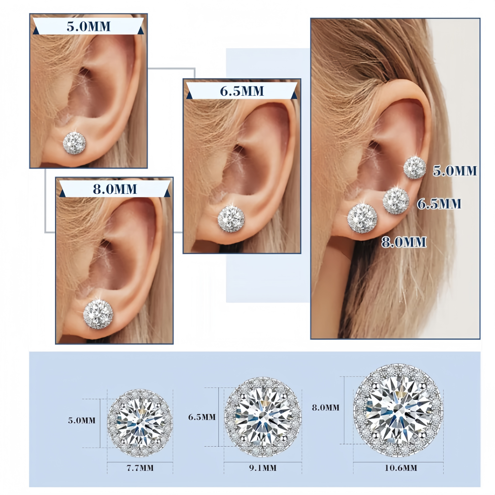 A: Choose 3–5mm for a subtle, minimalist look or 8–11mm for a bolder statement. Gold-tone gives a warm, classic feel, while silver-tone offers a crisp, modern aesthetic—pair with black or clear stones based on your style preference.