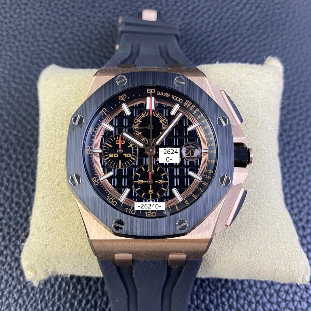 - Equipped with a 3126 chronograph movement: small seconds at 12 o’clock, 12-hour counter at 9 o’clock, and 30-minute counter at 6 o’clock, perfectly replicating all functions.